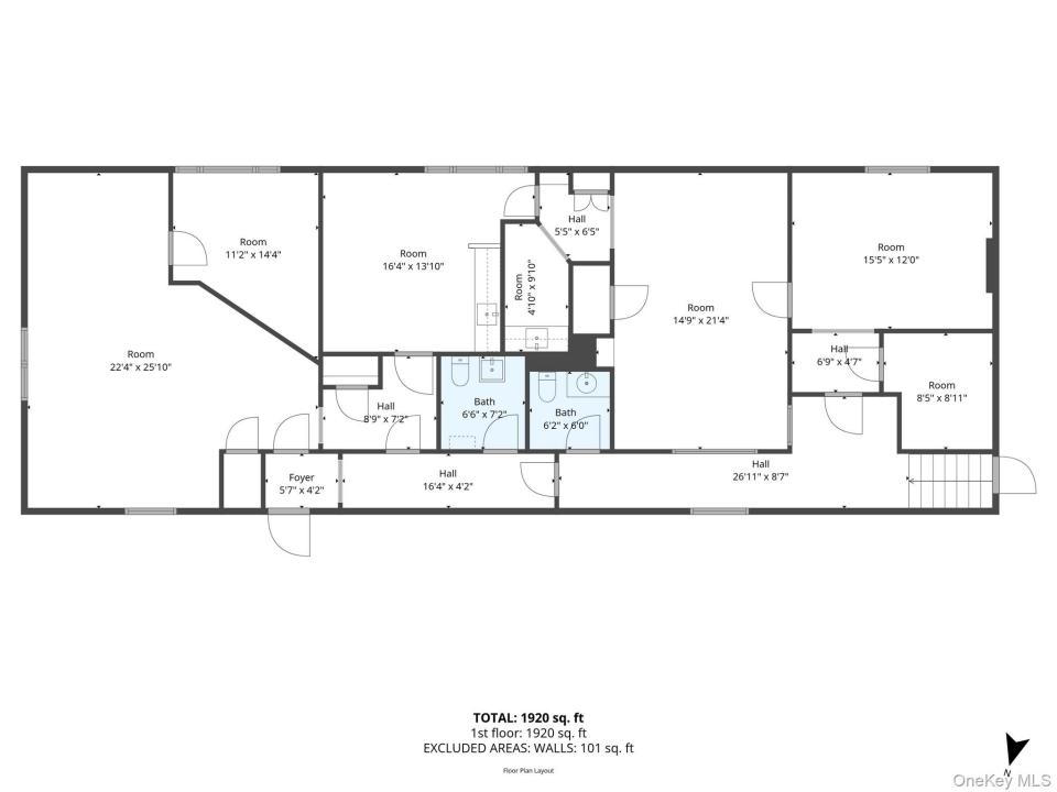 The layout also allows the space to be easily divided into two approximately 960 sq. ft. suites, creating an excellent opportunity for smaller professional offices.